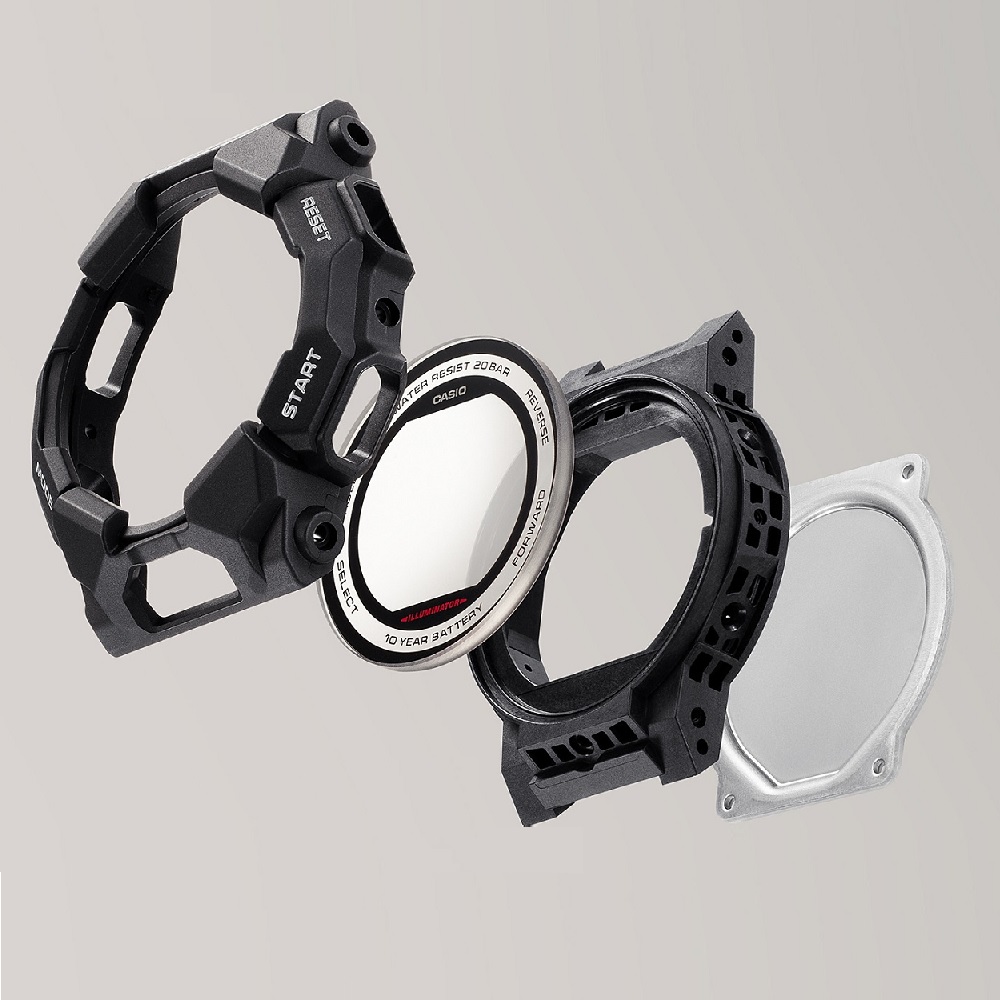 ハードな使用に耐える耐衝撃性能と、長く使える電池寿命約10年を同時に実現した、GD-010。主な樹脂パーツにバイオマスプラスチックを使用し、環境負荷低減に貢献することが期待されています。