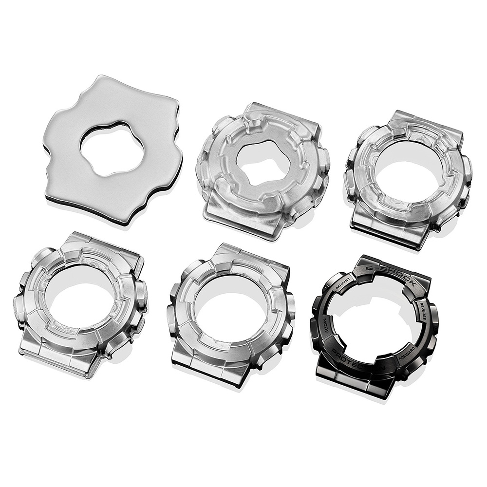 緻密な鍛造工程を経て、切断と研磨だけでなく、特殊な成形による金属製ベゼルを採用し、タフな構造はそのままに無骨で存在感のあるデザインに仕上げました。ケース素材には、高剛性を発揮するカーボン繊維入りファインレジンを使用し、新たにデザインされたメタルバンドで、幅広いストリートシーンにも対応できる仕様になっています。駆動方式 クォーツ