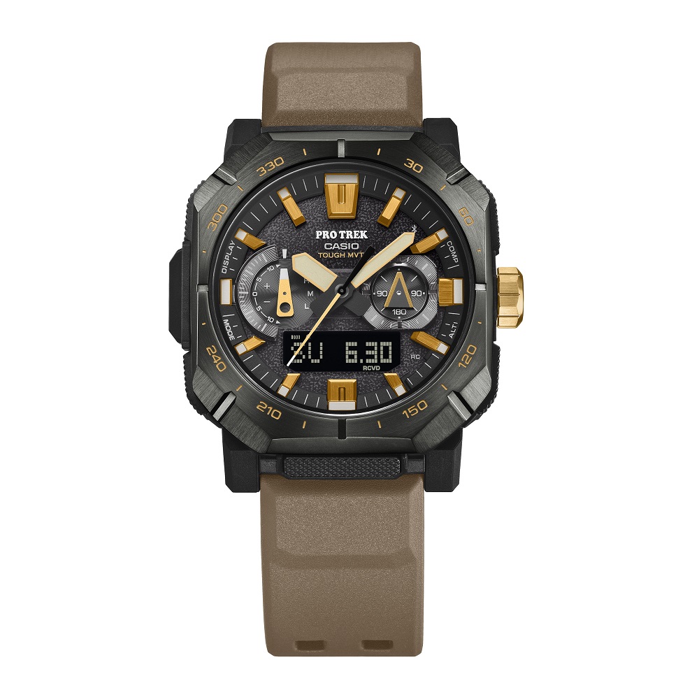 大自然を舞台に活躍する本格アウトドアウオッチ、PRO TREK PRW-B1000。アウトドアの聖地「ヨセミテ」のエル・キャピタンをイメージした角型ステンレススチールベゼルと、かつてのロッククライマーが使用したピトンをモチーフにした9時位置の小針が、自然への敬意と冒険心を表現しています。タフソーラーシステムは蛍光灯などの弱い光でも発電し、電波受信やライトなどの機能を安定駆動。長時間のトレッキングやキャンプでも電池切れの心配なく、安心してご使用いただけます。