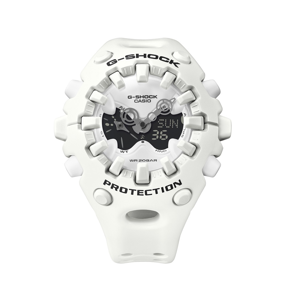 G-SHOCK独自の耐衝撃性能をキープしながら、ユニークかつ力強い外装デザインを実現しています。