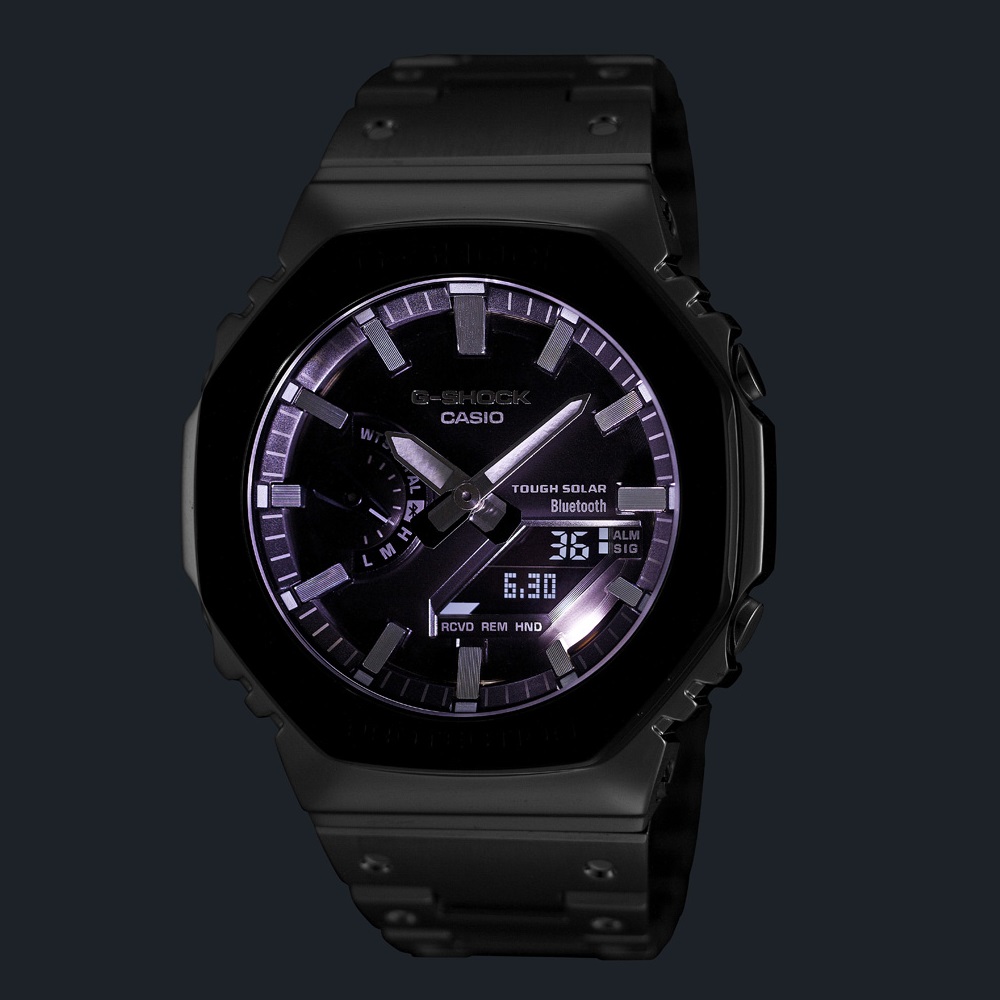 G-SHOCK初代モデル“DW-5000C”の八角形フォルムを受け継ぐGMW-B5000・GM-B2100・GMC-B2100から、その象徴的な八角形トップベゼルにブラックを採用したモデルです。