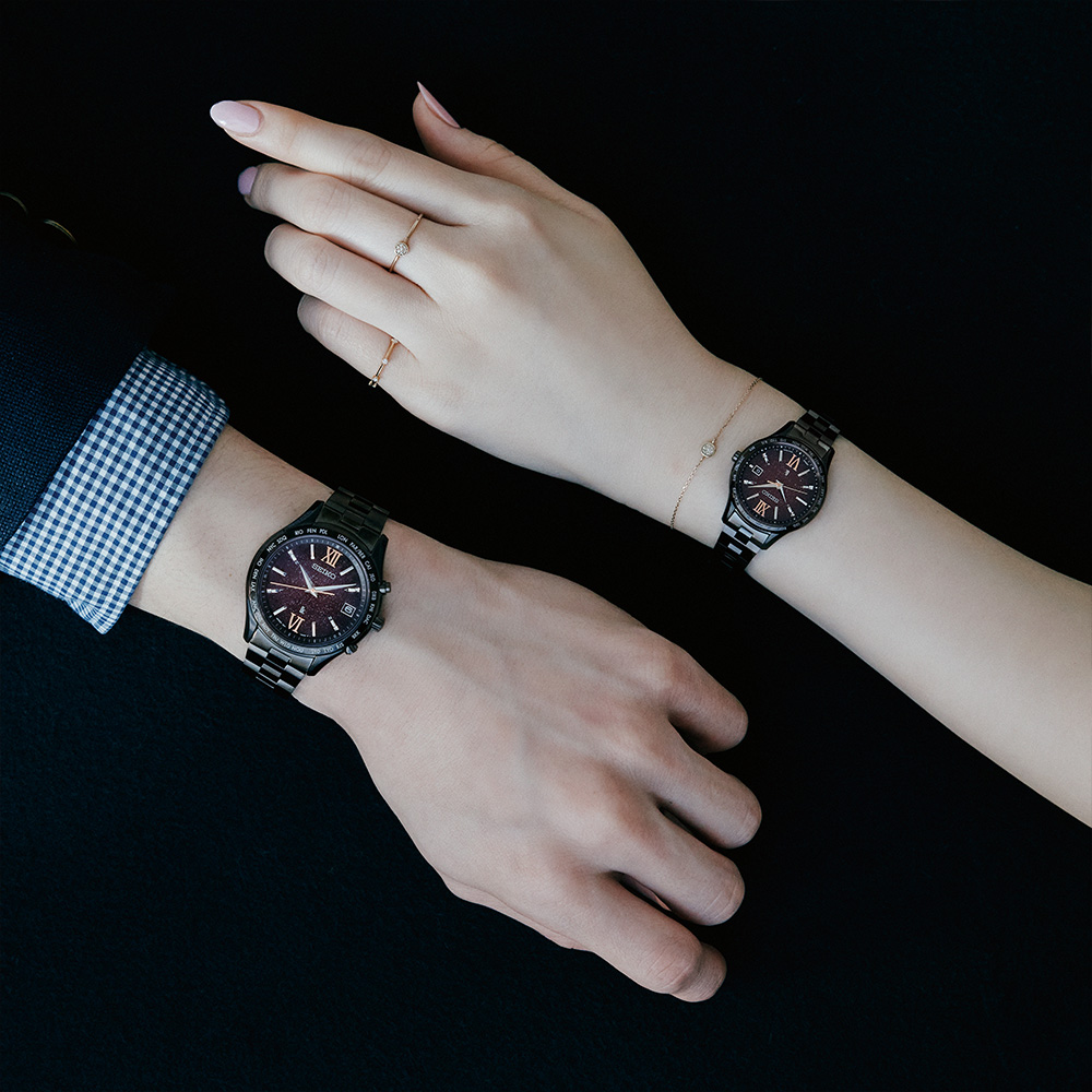 夏の夜にキャンドルの明かりが灯るキャンドルナイトの様子を、オールブラックケース・ブレスレットと煌めくダークブラウンのグラデーションカラーで表現しました。