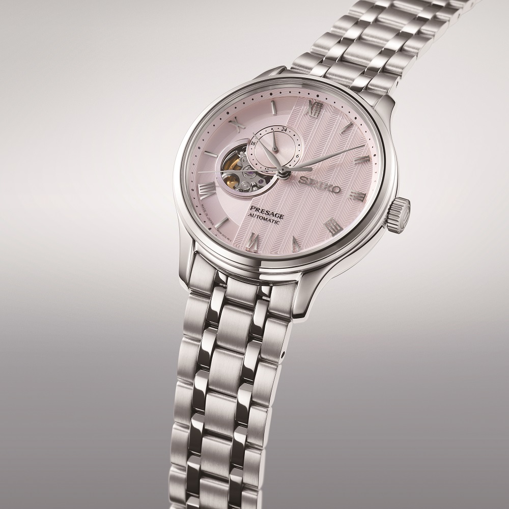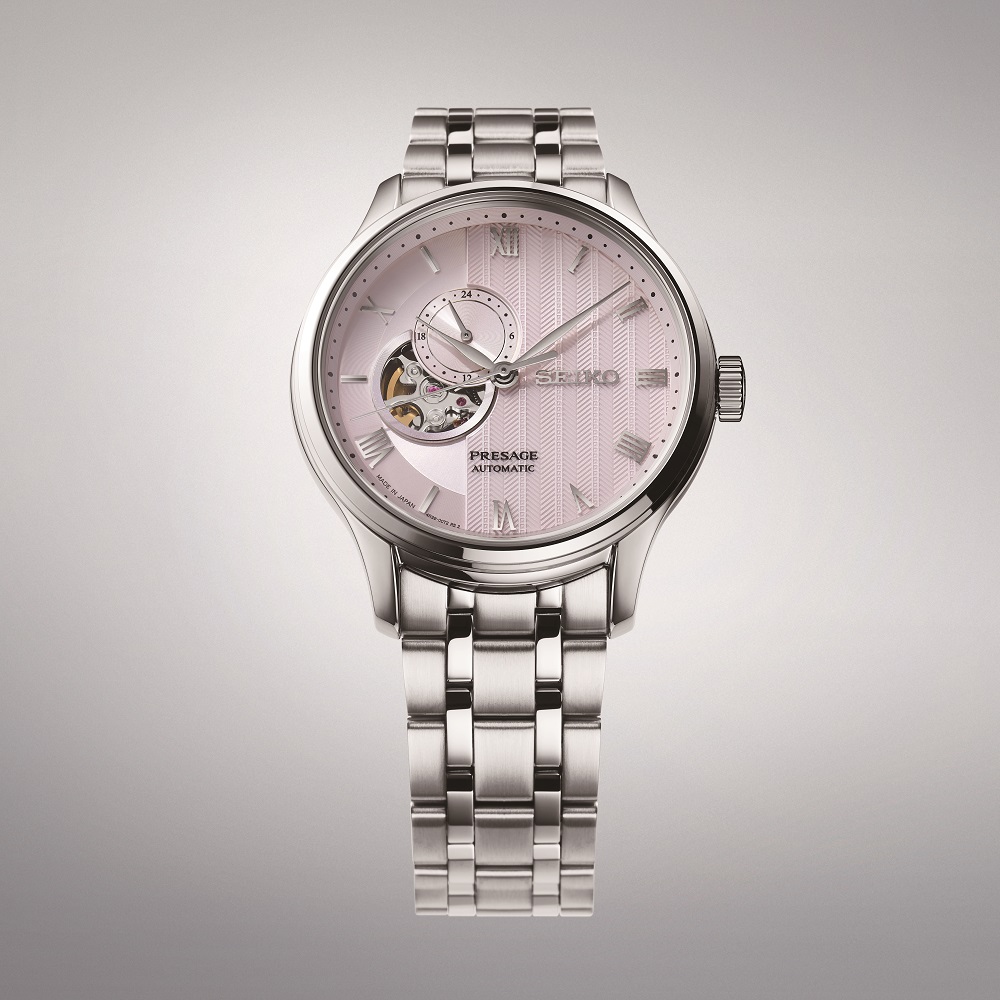 優美な京都の桜の情景を、落ち着いた淡いピンク色のダイヤルで表現。駆動方式 メカニカル 自動巻(手巻つき)