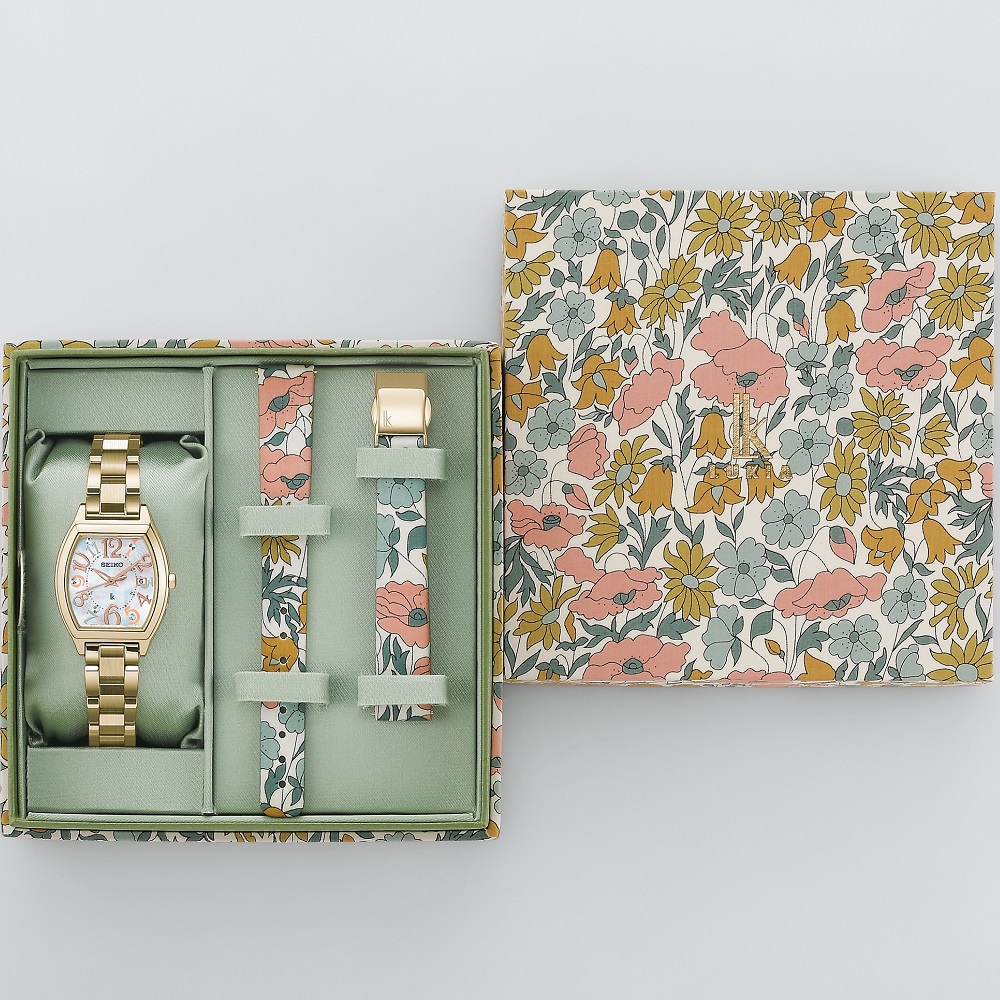 日常生活を彩る女性の身近なアイテムとしての共通点をもつルキアから、リバティ・ファブリックスを付け替え用ストラップとスペシャルボックスにあしらった、特別な限定モデルを発売します。