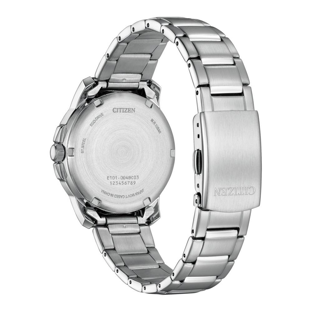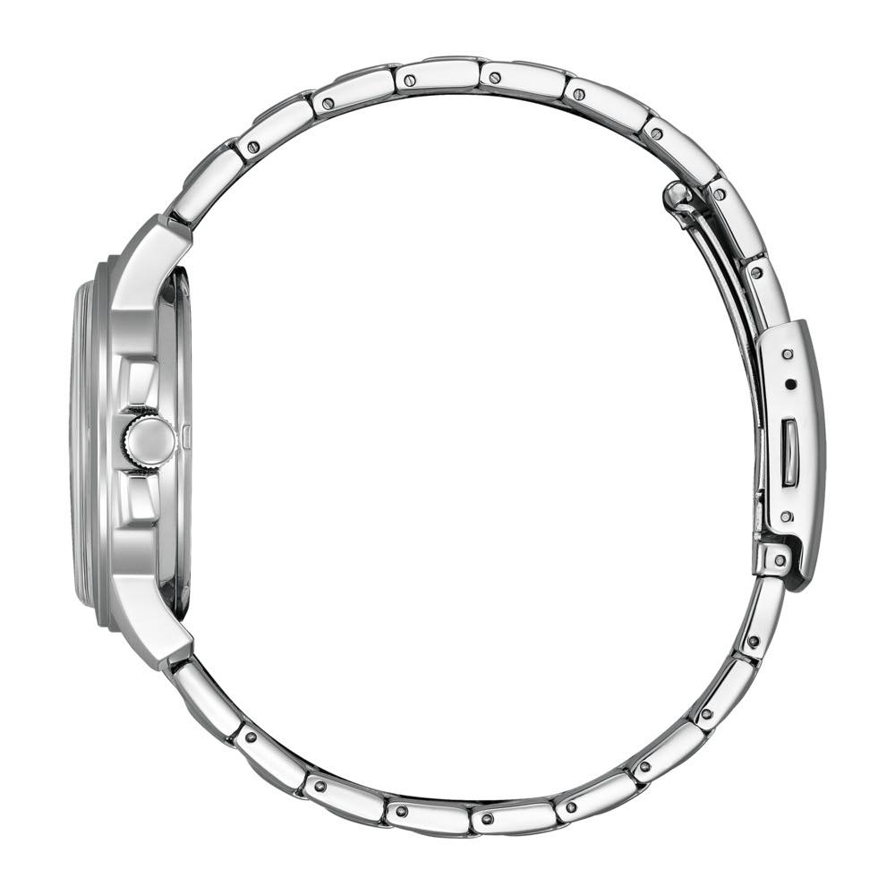 インデックスは、大胆で立体感のあるデザイン。暗い場所でも時刻が確認しやすい夜光付きで視認性にも優れています。駆動方式 ソーラー