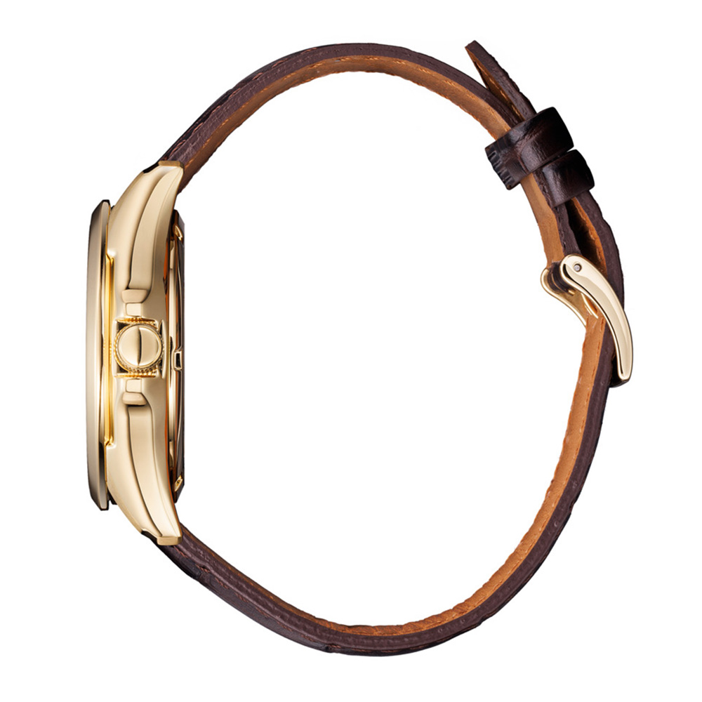 オープンハート文字板が人気のメカニカルモデルから、クラシカルな表情がきわだつ革バンド仕様が登場。