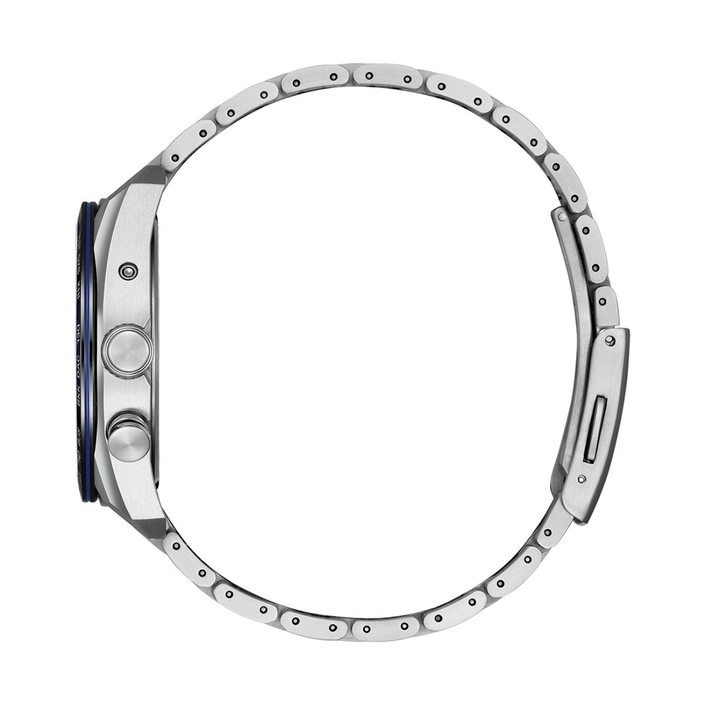 ・ケースとバンドはデュラテクトプラチナを採用。鏡面仕上げの光沢が映えるブラックチタン?のベゼル、ブルーの差し色をプラスしたシルバーのりゅうずが、神秘的な印象の中にもアクトラインらしさを感じさせます。駆動方式 ソーラー電波