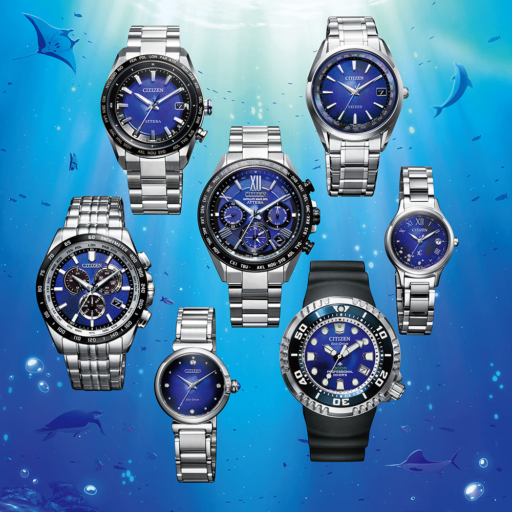 光の反射で様々な表情を見せる構造色文字板が、“青の時、ひとつの世界。”をコンセプトに、新たな青を表現しました。