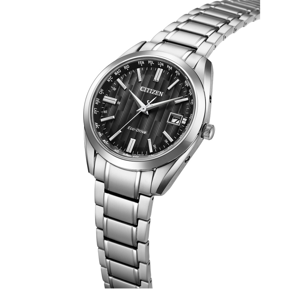 ・ケースとバンドにスーパーチタニウム?を採用した、ベーシックな3針タイプのエコ・ドライブ電波時計。