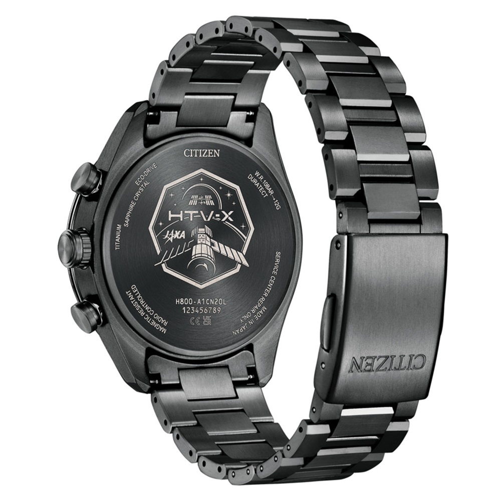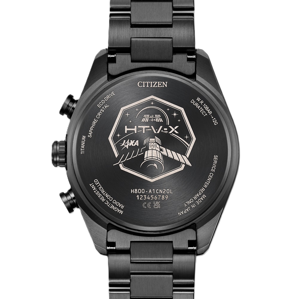・微細なラメがきらめくブラックの文字板が、宇宙空間を表現。「HTV-X」のボディカラーに着想を得た
