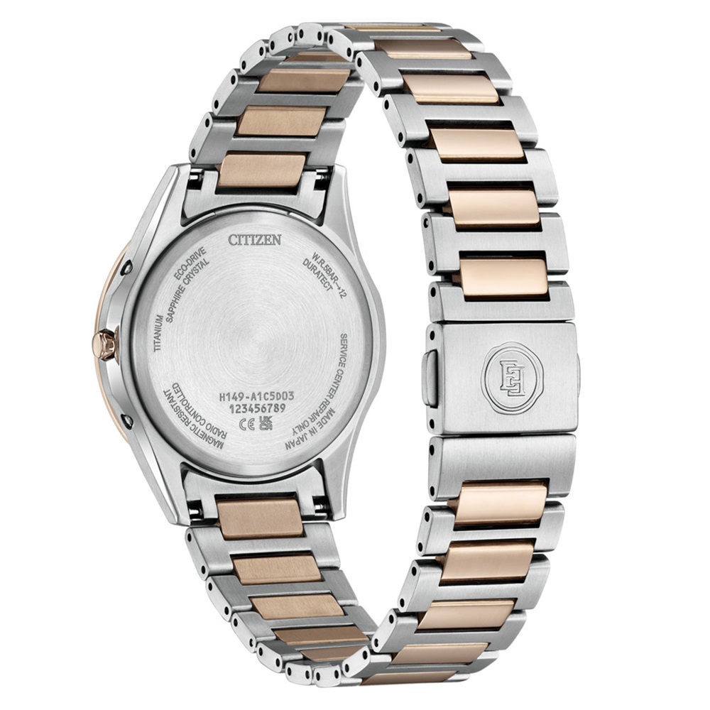 ・ケースとバンドは、ライトシルバー色とサクラ色を組み合わせたツートン仕様。ミラー仕上げの中ゴマが特別感を演出しています。駆動方式 ソーラー電波