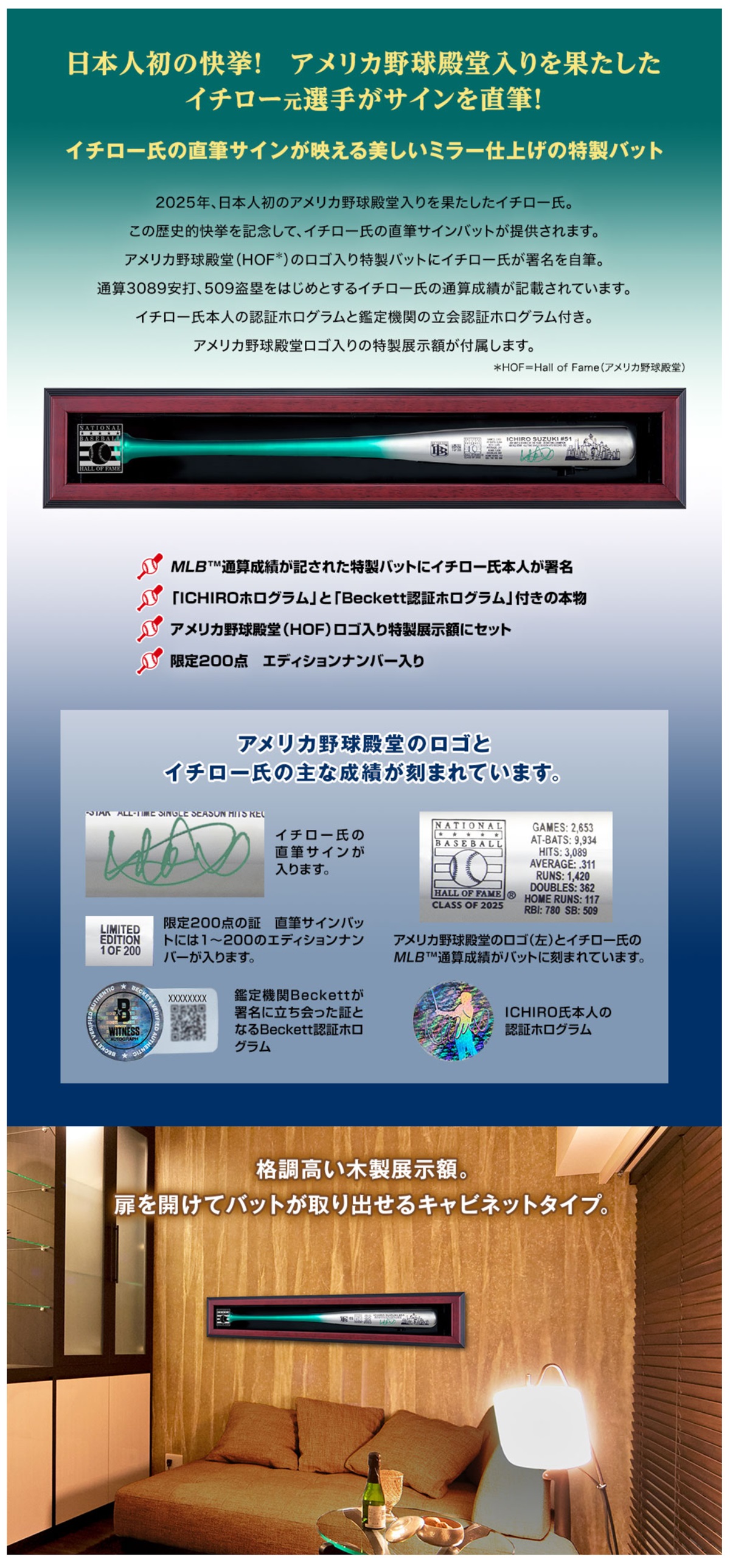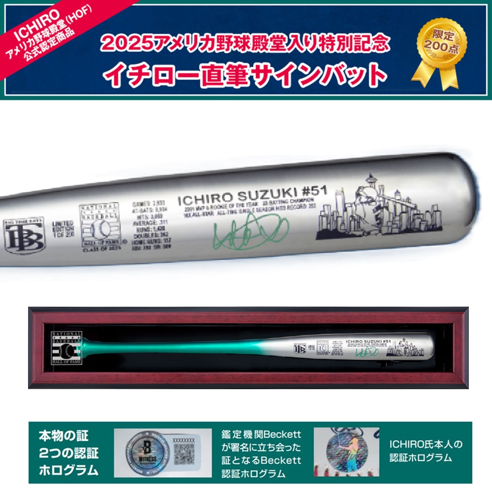 材質 サインバット=木製クローム調仕上げ(ビッグタイムバッツ社製) 特製展示額=MDF、アクリル