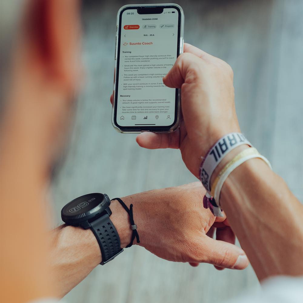 スマートなトレーニングができているかトレーニング負荷は前進的かSuunto Race では、トレーニング負荷に関するパーソナライズされたフィードバック、心拍数変動 (HRV) に基づいて計算された進捗と回復を受信します。Suunto Coach AI はワークアウトを監視し、モチベーションを保てるような助言を行います。